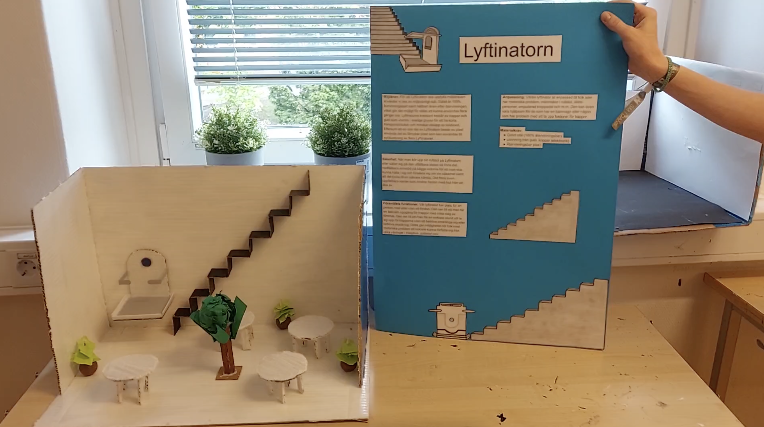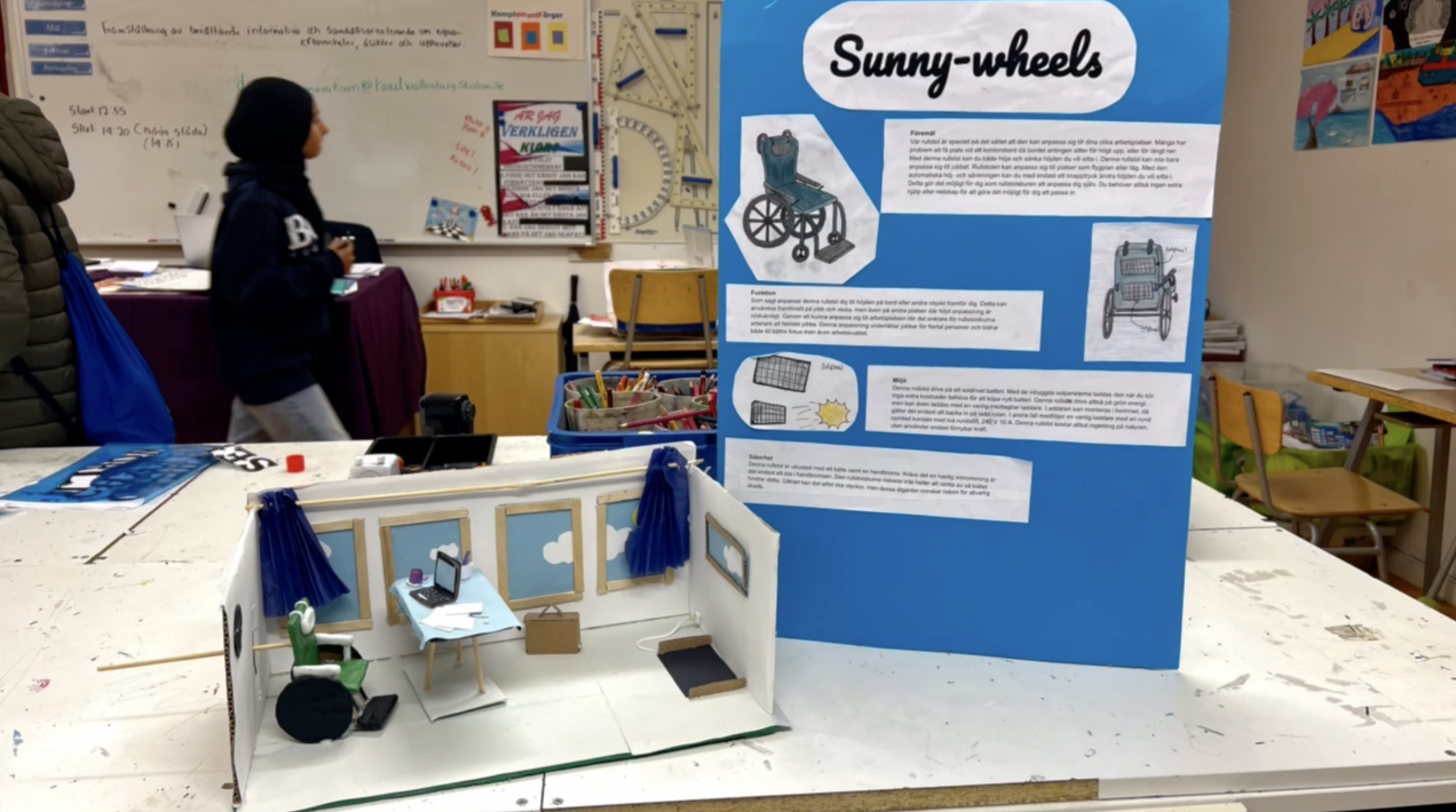 Inför kubprojektet Artikel no: 23 ”Rätten till arbete” designade elever i åk 9 ett föremål för att anpassa en arbetsplats till funktionsvarierade personers behov. Uppdrag: I Stockholms stads olika arbetsplatser ska ditt designade föremål finnas utplacerade. Lämpliga åtgärder bör vidtas, dvs. effektiva och praktiska åtgärder för att organisera arbetsplatsen med hänsyn till personer som är funktionsvarierade, t.ex. inredning av lokaler eller anpassning av utrustning (Prototyper).