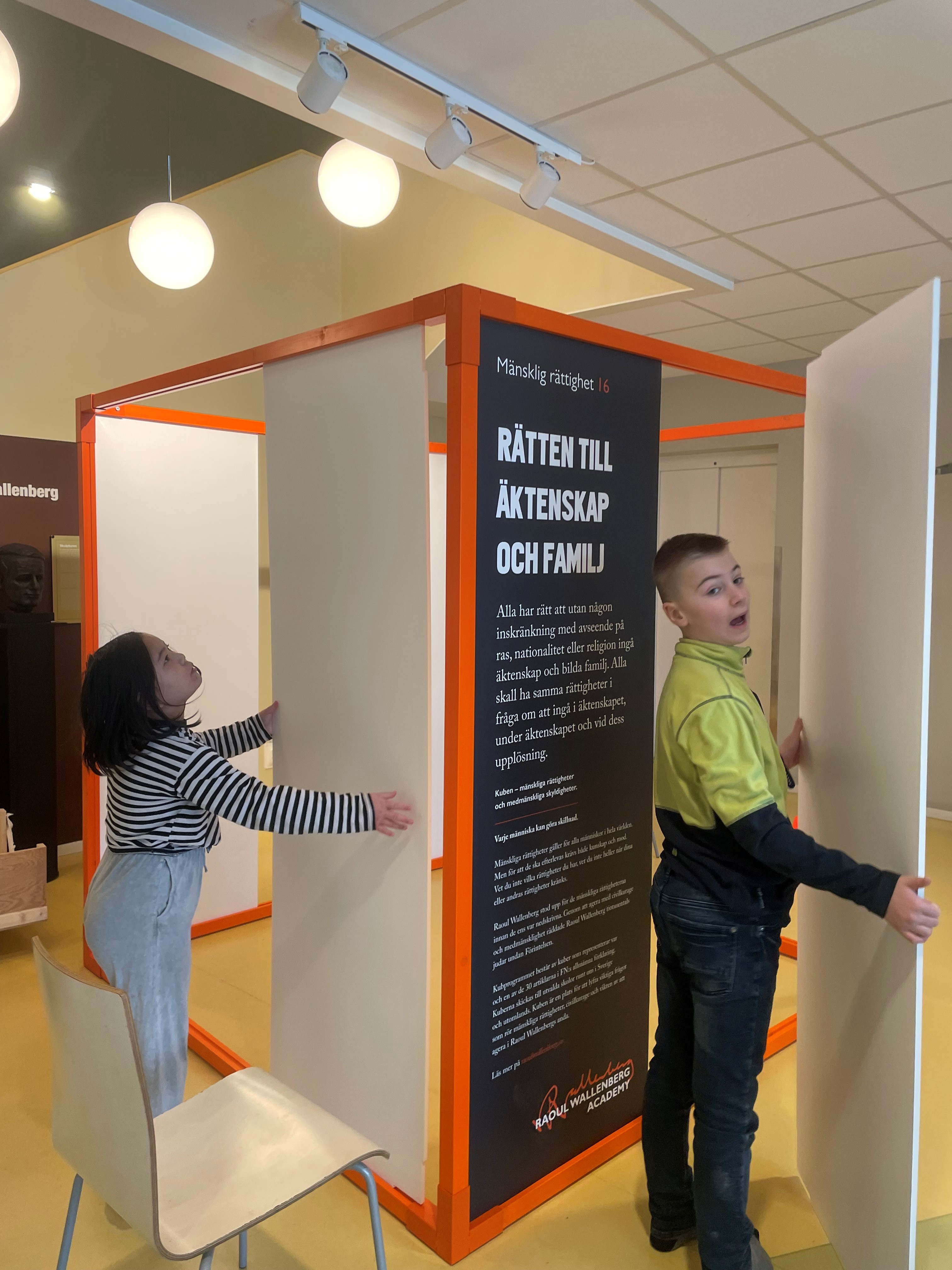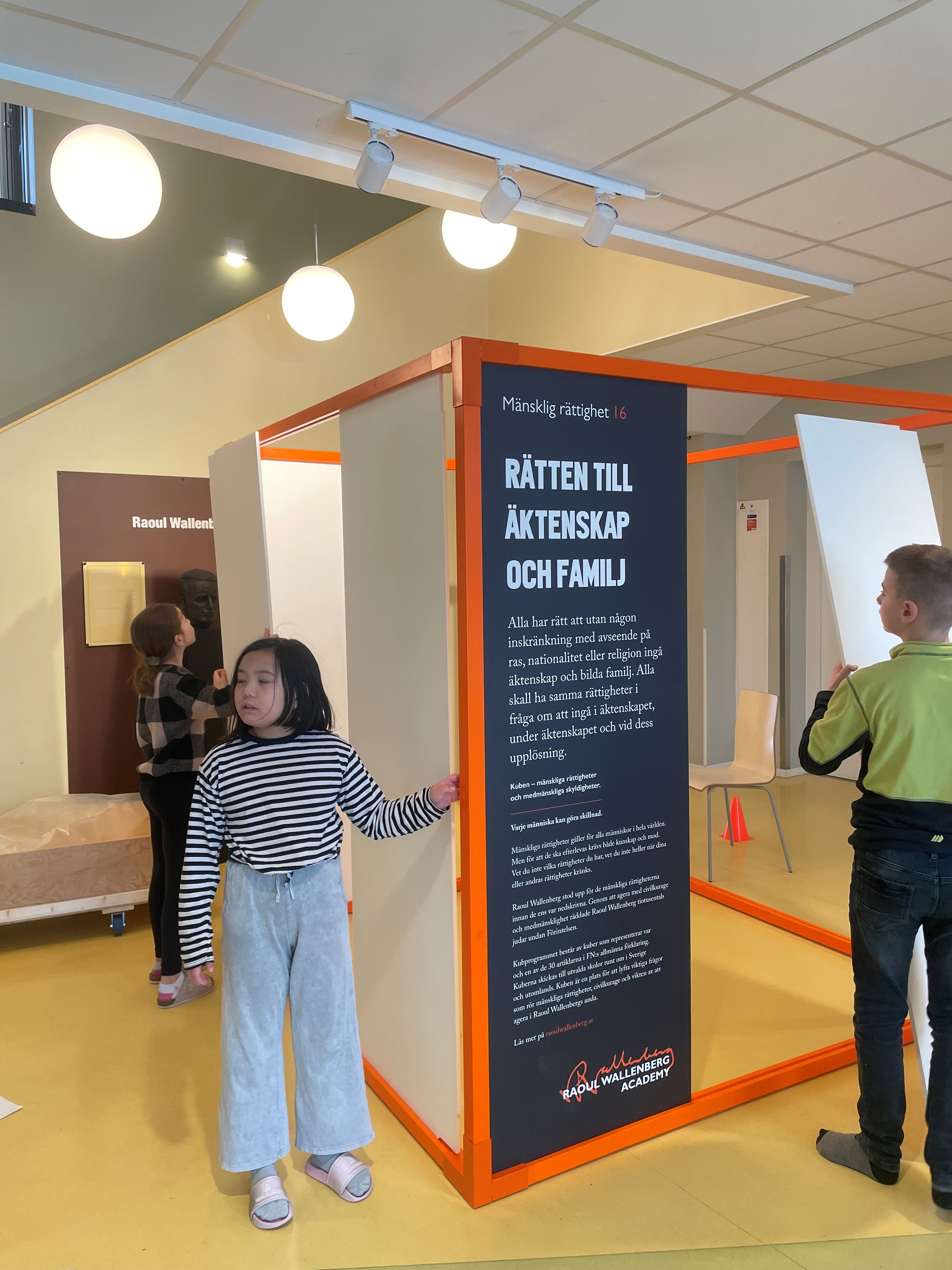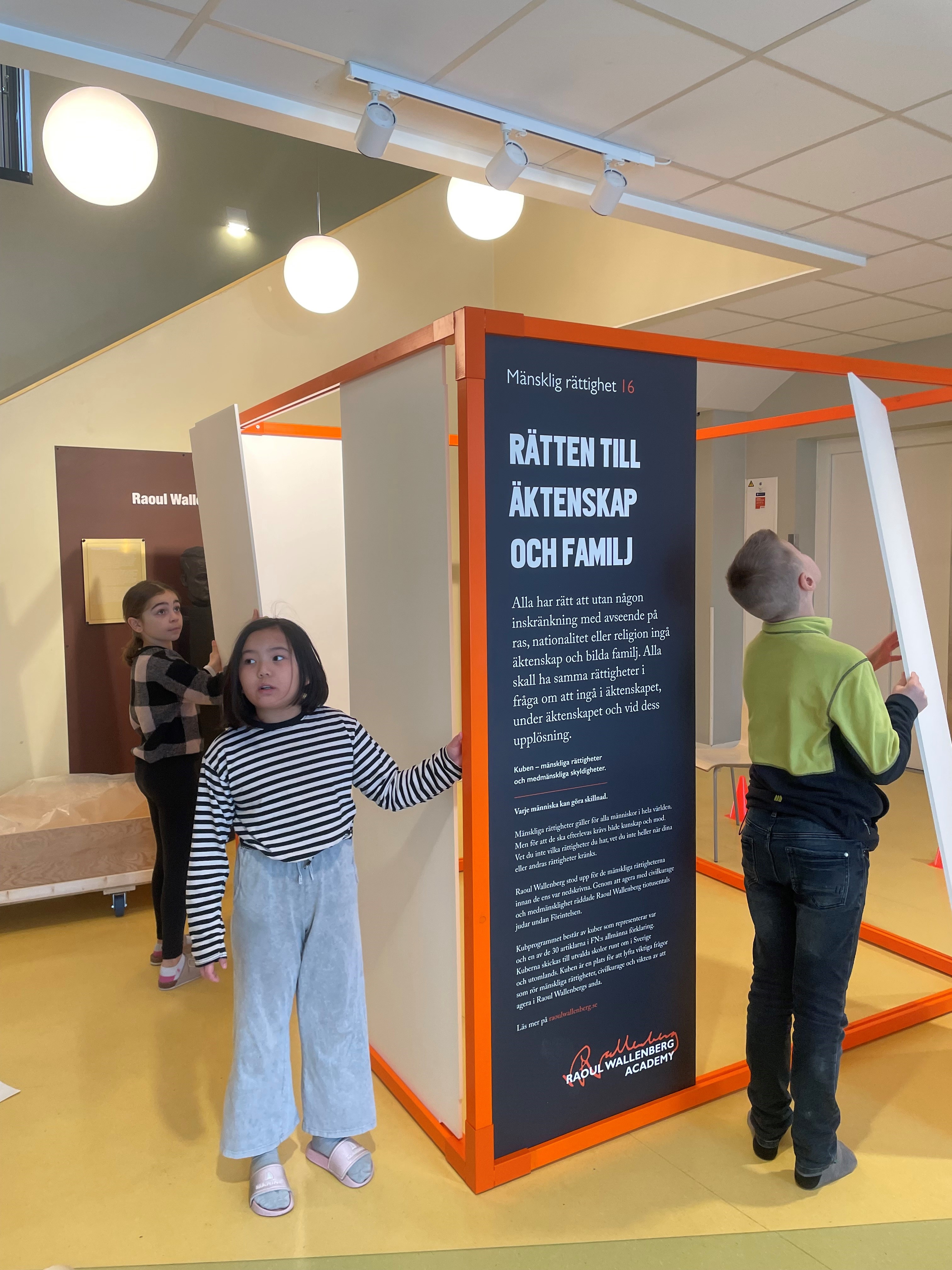 Alla klasser började med att introducera den mänskliga rättigheten ”Rätten till äktenskap och familj”. Årskurserna valde att arbeta på olika sätt utifrån ålder på sina elever. Under processen dokumenterade årskurser sitt arbete genom att fota. När allt var klart hade vi en skolinvigning där eleverna fick besöka kuben och titta på hur andra hade tolkat rättigheten.