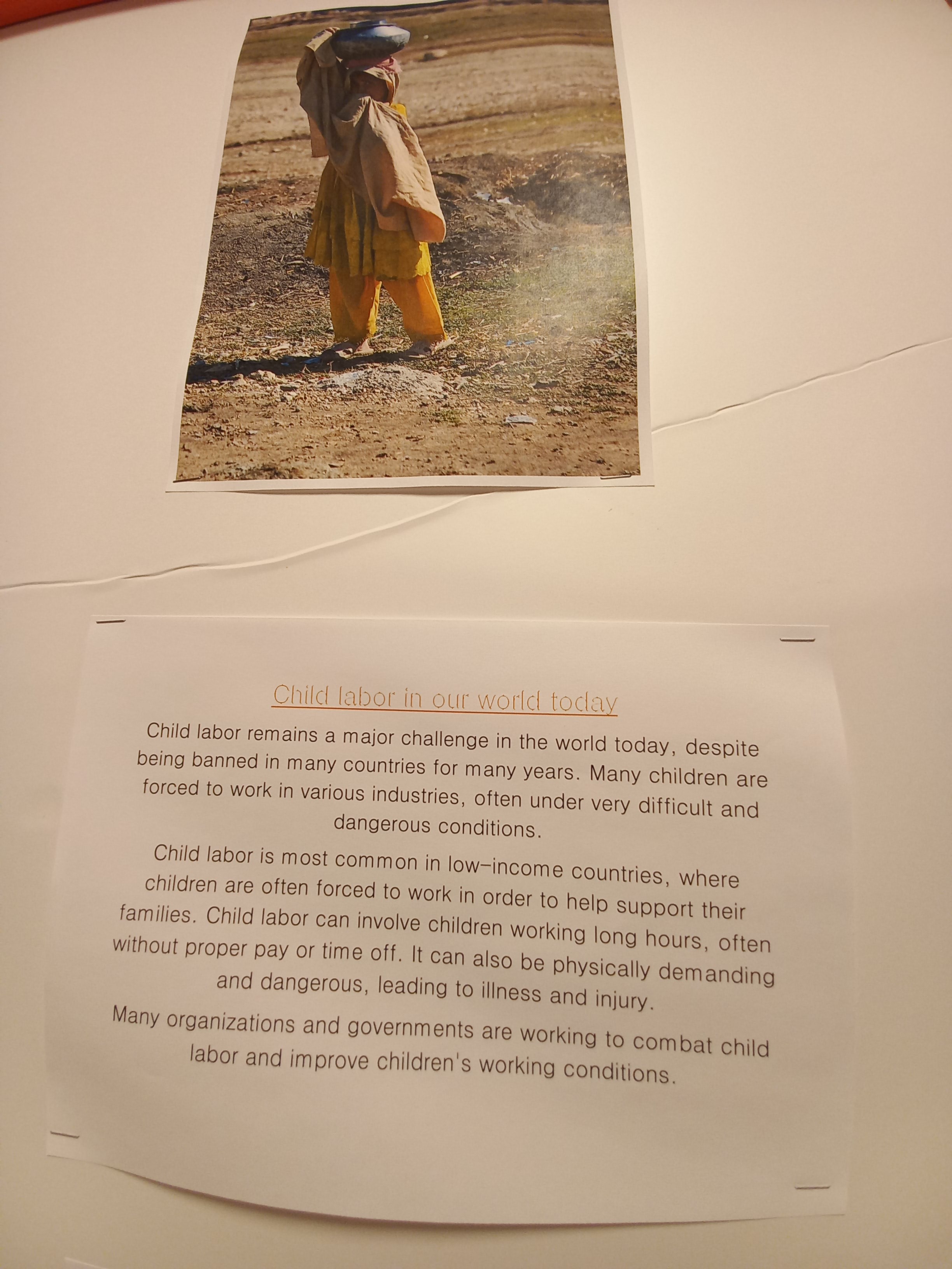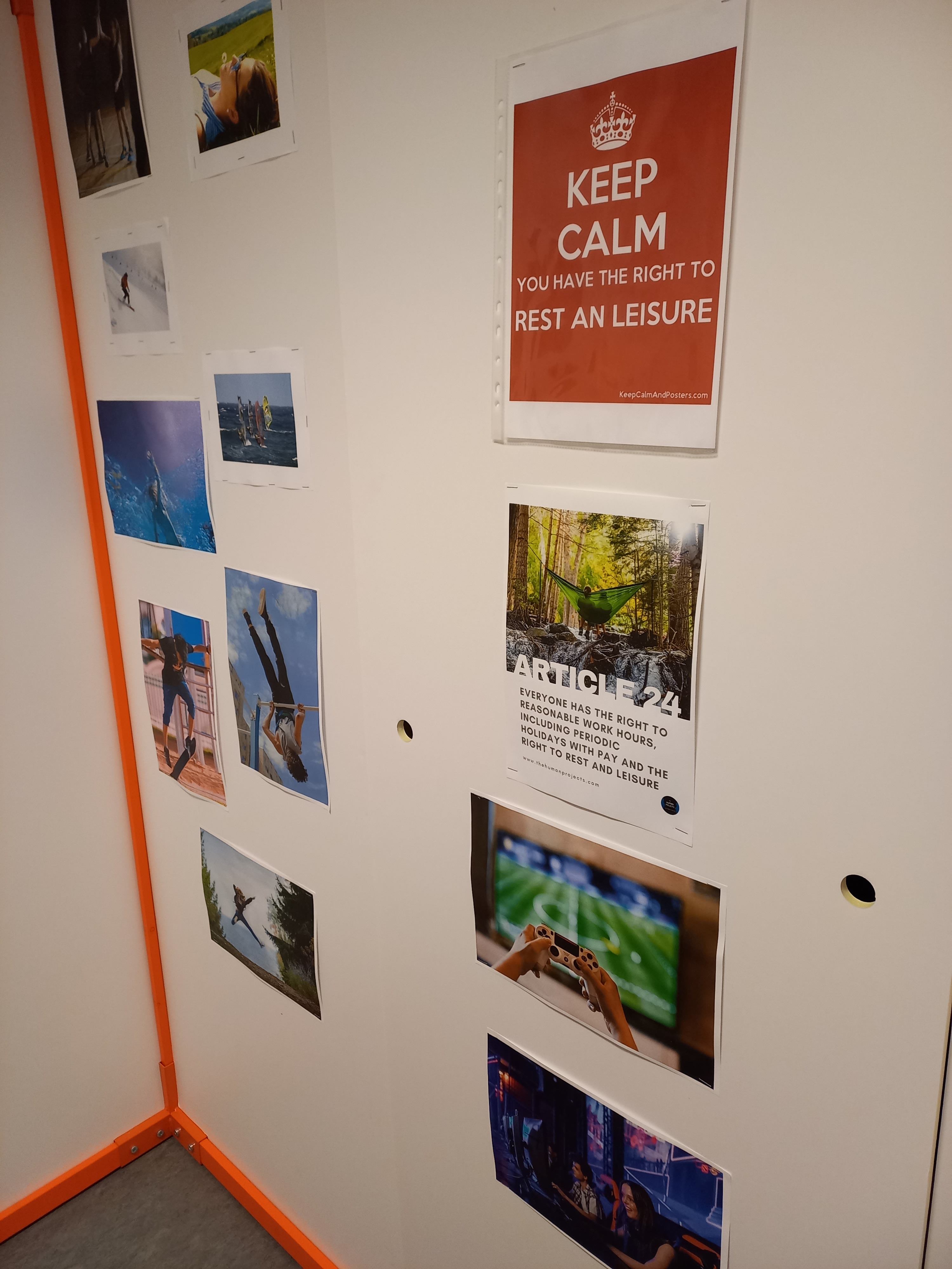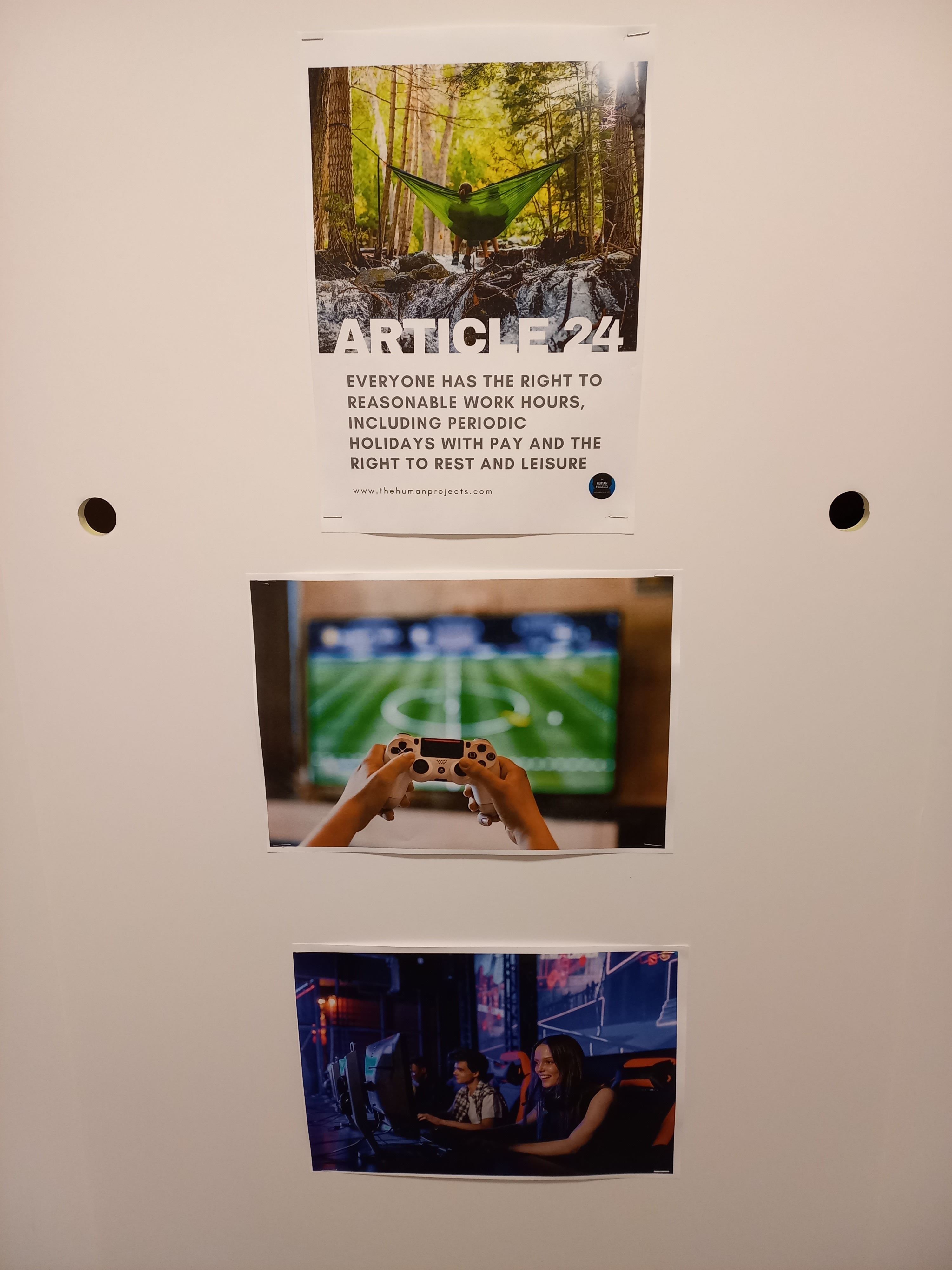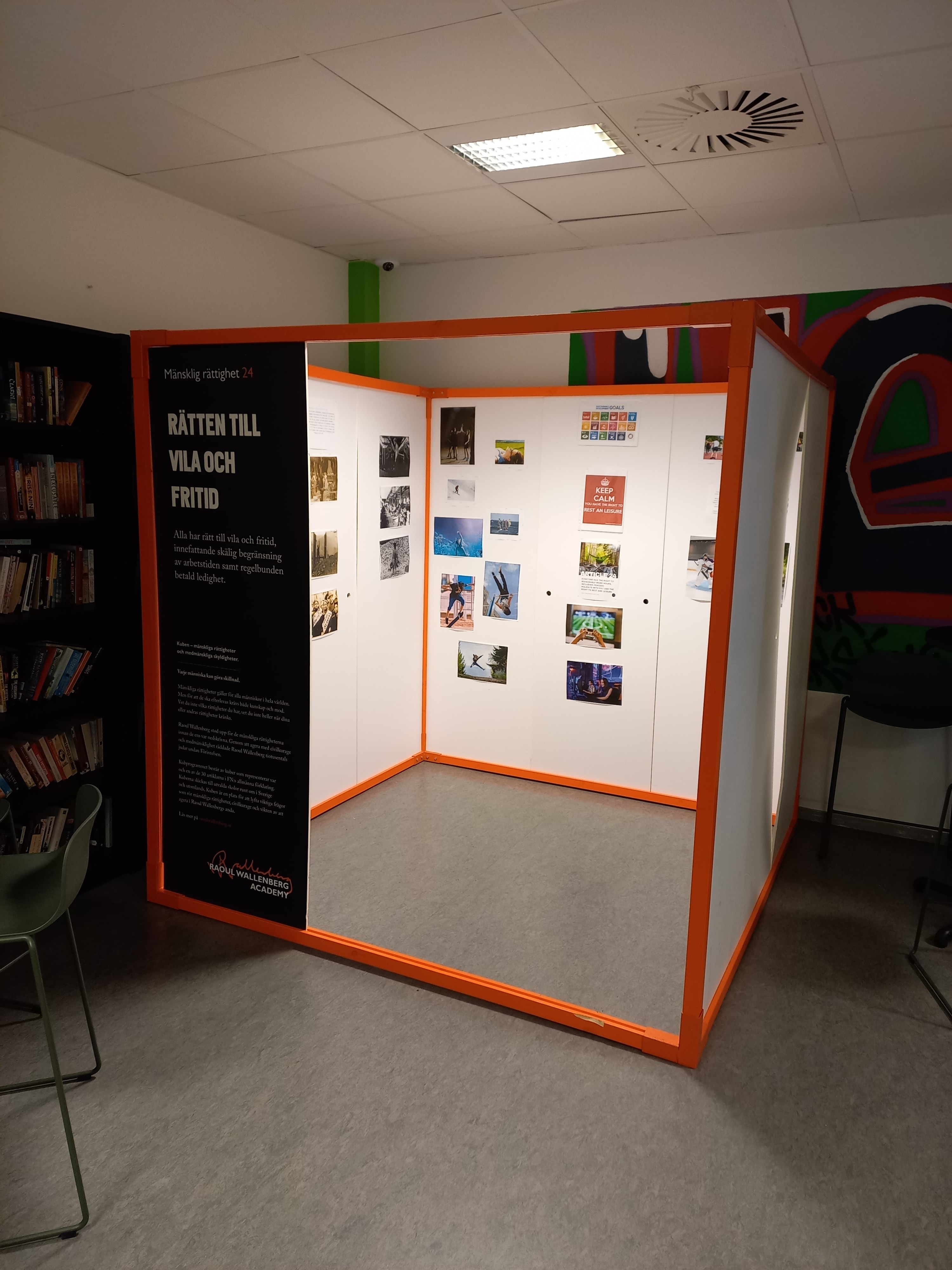 På vår skola har vi arbetat med ett projekt där vi fokuserade på mänskliga rättigheter, särskilt vila och fritid. Det var verkligen spännande att få arbeta med detta ämne eftersom det är så viktigt för alla människor och det gjorde oss medvetna om delar av samhället som vi inte kände till innan. Vi började med att lära oss om vad mänskliga rättigheter är och sedan varför och på vilket sätt vila och fritid är en mänsklig rättighet. Sedan delades vi upp i mindre grupper och varje grupp fick en sida av kuben att jobba med. Vi diskuterade idéer och kom överens om hur vi skulle dekorera våra sidor för att spegla det vi hade lärt oss om ämnet. Kuben blev en plats där hela skolan kunde se varandras arbeten. Vi höll även en presentation för klassen där vi skrev texter och förklarade våra idéer och vad vi hade lärt oss om mänskliga rättigheter och vikten av vila och fritid. I årskurs ett gjorde vi skriftliga arbeten på engelskan om barnarbete baserat på det yrkesprogram som vi läste och i årskurs två på historian lärde de sig om hur barns rätt till vila och fritid förändrats i Sverige. Årskurs tre hjälpte till att samla in bilder på de aktiviteter som skolans elever gör på sin fritid. Det var en rolig och lärorik upplevelse att arbeta med detta projekt. Vi lärde oss inte bara om mänskliga rättigheter, utan också om hur man kan samarbeta med varandra för att nå ett gemensamt mål. Skolan reflekterade även över vikten av att elever får vila och fritid från skolstressen och anordnade flera fritidsaktiviteter som ni kan se nedan.