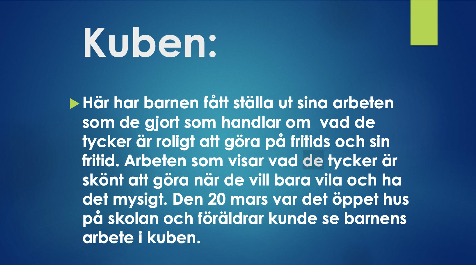 Genom Kubmetoden får elever lära sig om mänskliga rättigheter, förhålla sig till den specifika rättigheten och därefter kreativt gestalta de diskussioner, tankar och idéer som väcks. Resultaten av varje skolas Kub kan du ta del av nedanför.