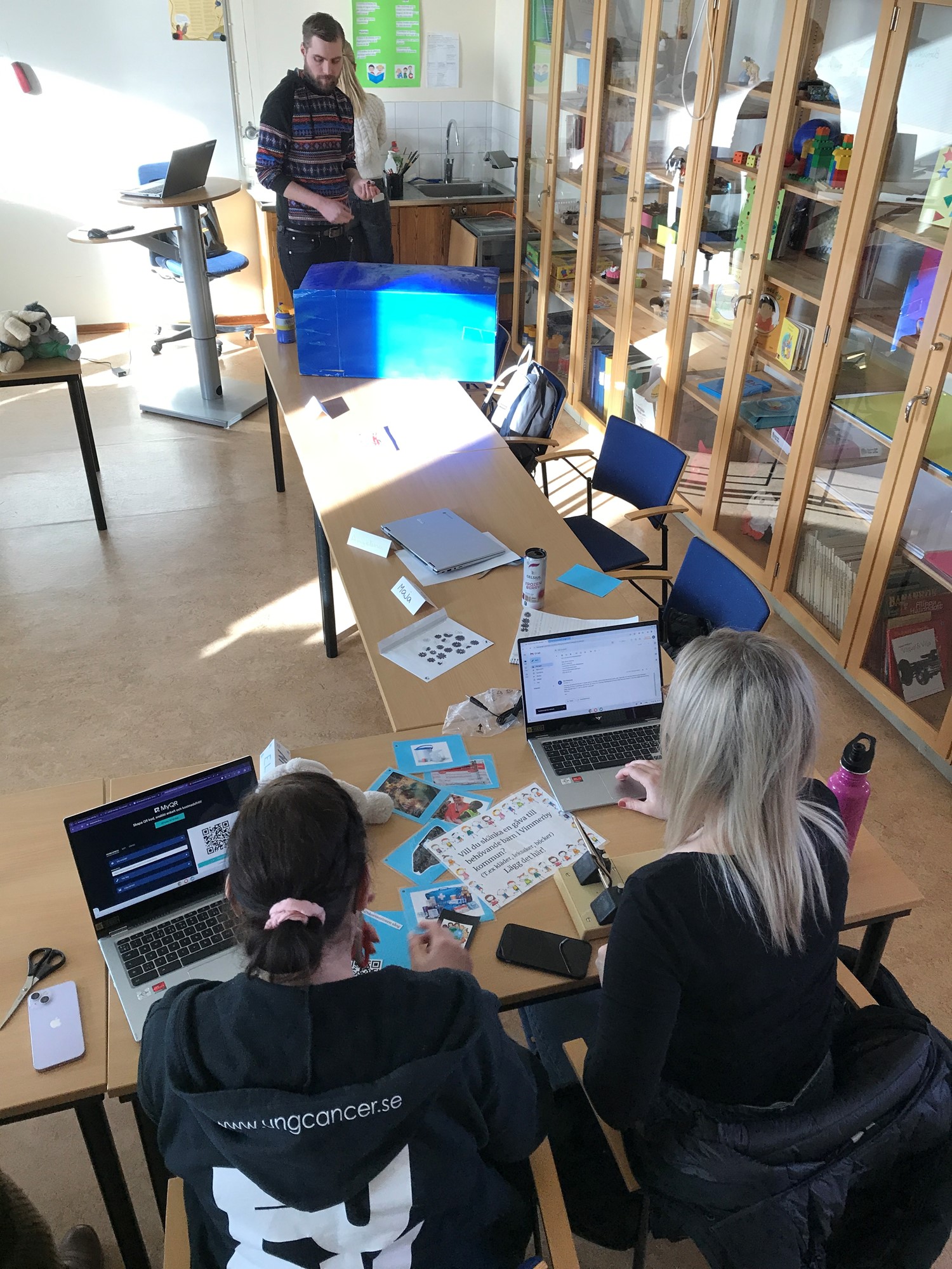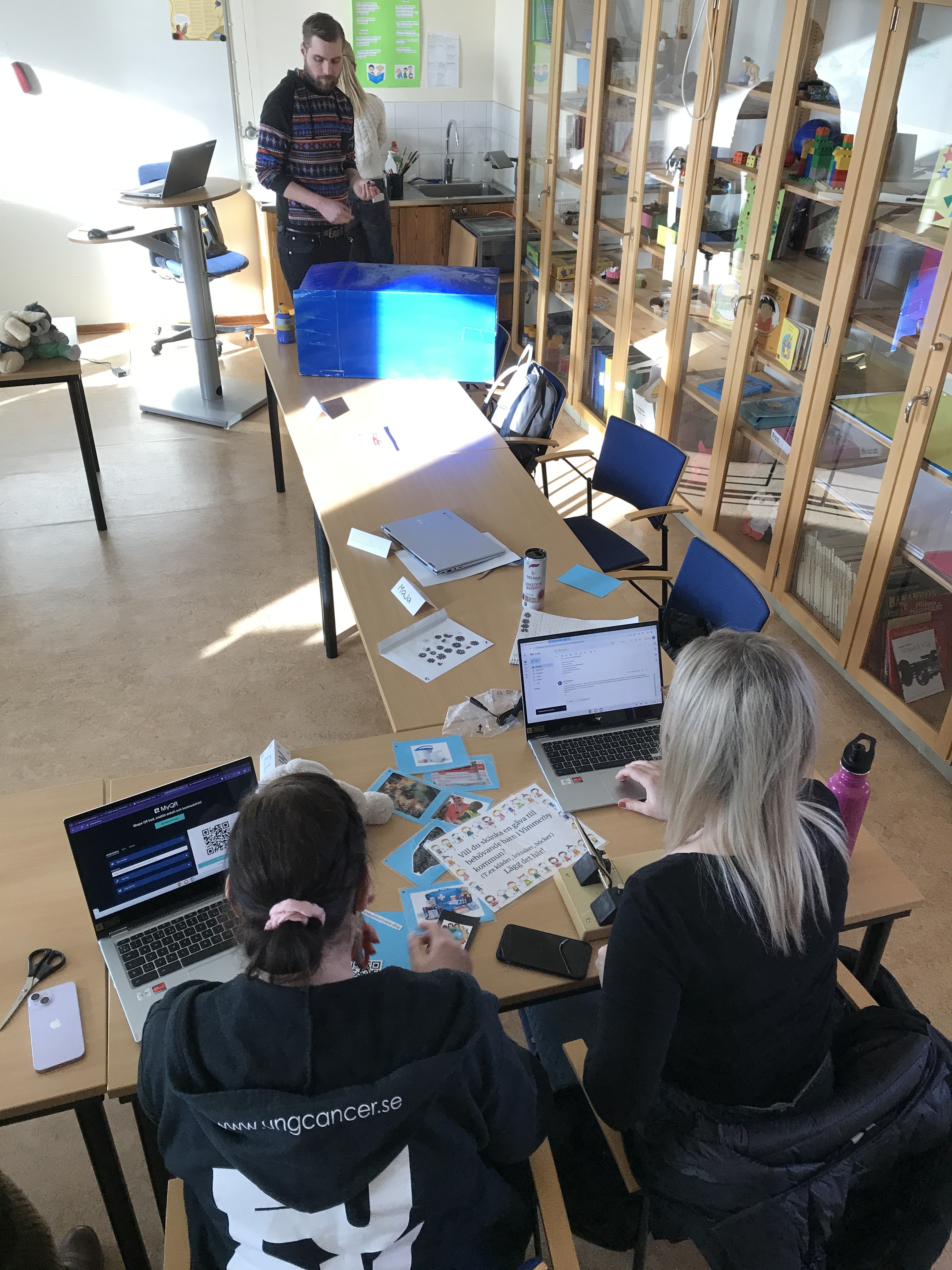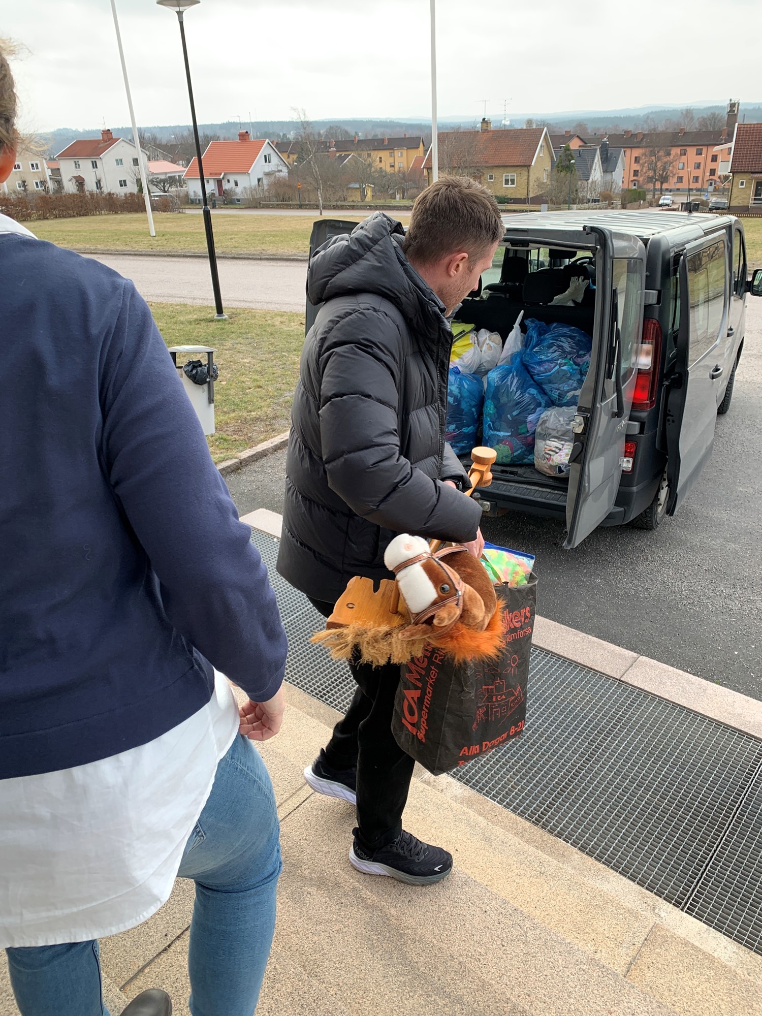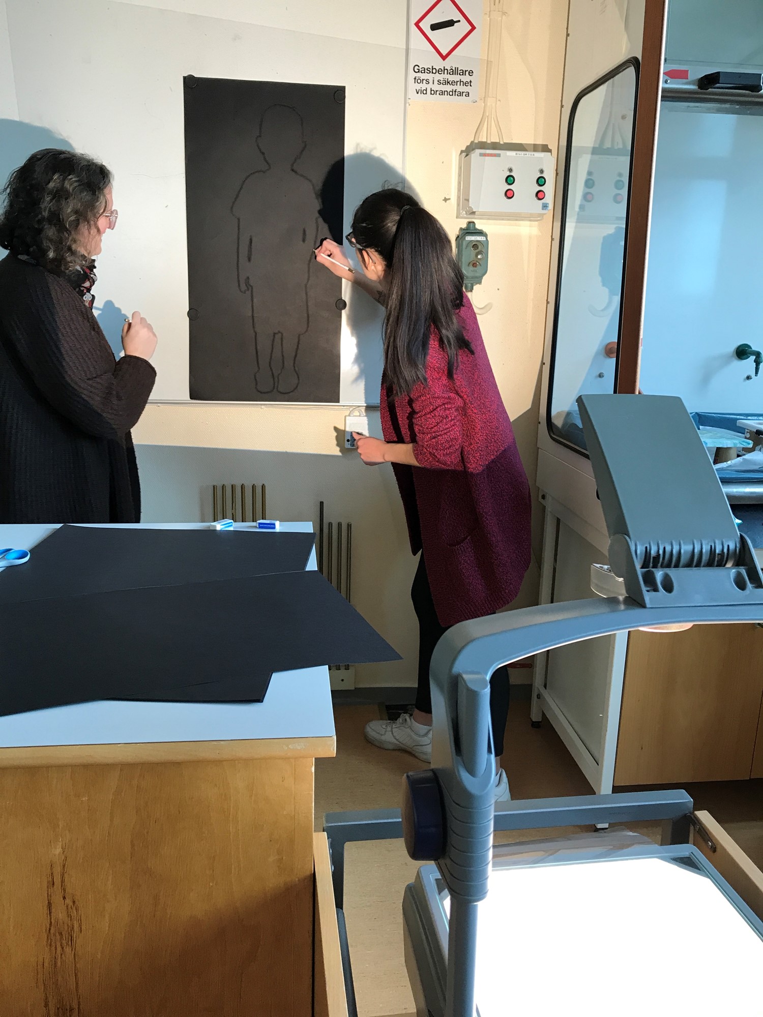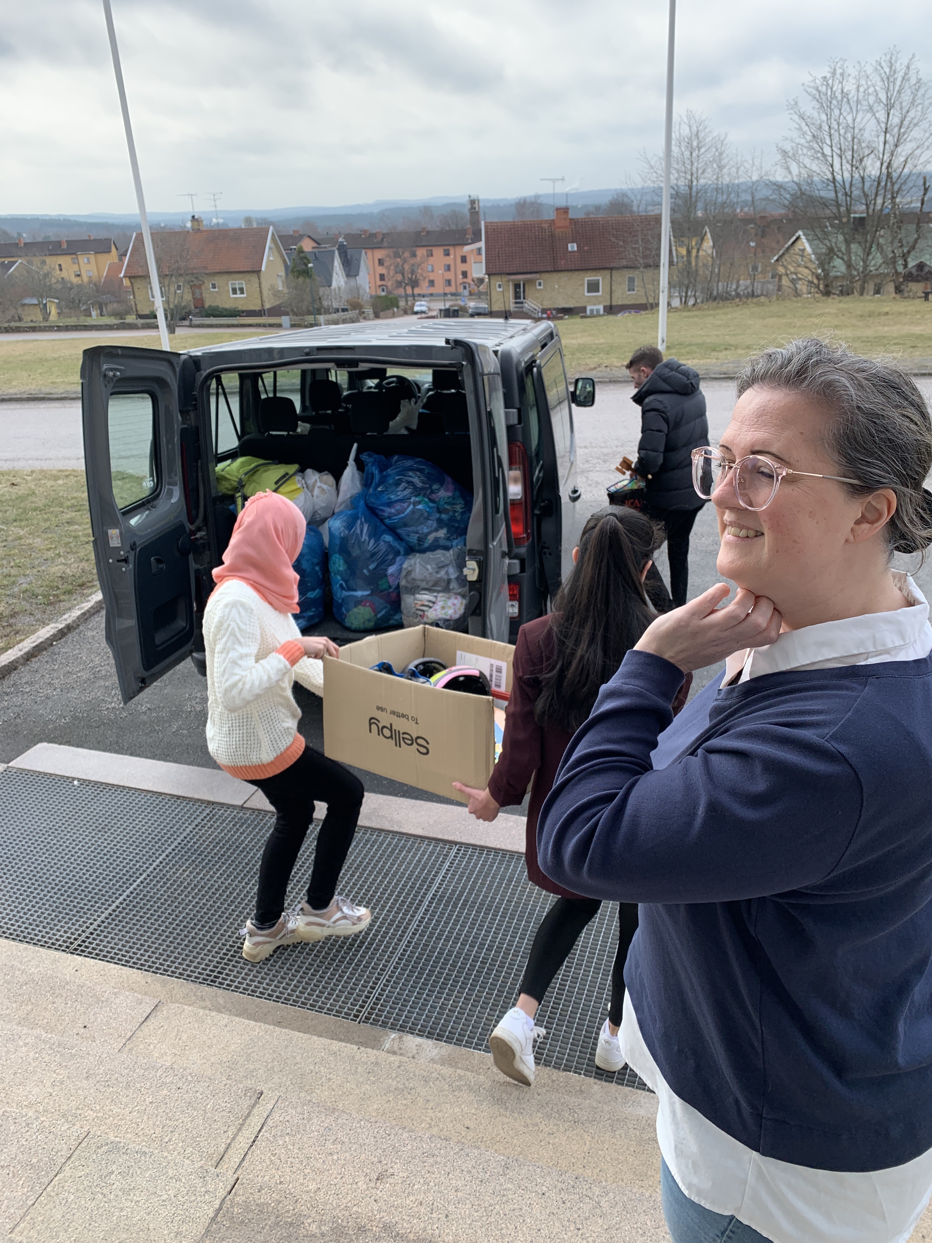 "Rätten till ett tryggt liv" - Idén om "Barn på flykt" kom ganska snabbt och lätt till oss. Med tanke på vad som händer i världen just nu och att vi i framtiden ska jobba med barn så var valet av tema självklart på något sätt. Vi började med att göra en tankekarta om vilken information vi ville ha med och hur vi ville presentera vårt arbete för ögat. Vårt mål var att få människor berörda genom att se vår utställning och att väcka engagemang och vilja lära sig mer om hur det kan vara att vara ett barn på flykt. Utställningen bestod av information på både kubens väggar och ett bildspel på en padda, svarta siluetter på barn pryder väggarna och en insamling för kläder och leksaker till flyktingfamiljer som kommer till Vimmerby kommun fanns i KUBEN så att alla som går på skolan kunde lämna in det de ville skänka under tre veckor när utställningen var öppen. Vi kunde aldrig anat hur mycket vi skulle få in... Simon Lundberg och Anton Palmer från kommunen kom med en minibuss för att få in alla saker och kläder som vi fått. De gick direkt till nya familjer i Vimmerby som nyss kommit som flyktingar. Och vad vi har hört så har det mesta gått åt! Vi är väldigt tacksamma för den respons vi fått på vårt KUBEN-projekt "Barn på flykt" i form av gåvor men också för allt vi själva har lärt oss om detta tema. Vi känner oss tacksamma att leva i ett demokratiskt och tryggt land i fred nu när vi vet hur det kan vara för de 110 miljoner i världen som tvingats lämna sina hem, nära och kära, sitt land. I samband med utställningen har vi fördjupat oss i: - Några konflikter som pågår i världen idag - Hur en flyktväg kan se ut, vad som kan hända på vägen och hur lång tid det kan ta att komma fram till en säker plats/land - Hur en asylprocess går till - Vad som händer när du fått asyl i Sverige (rättigheter och skyldigheter och ekonomi) - Vilka länder som tar emot flest flyktingar och hur många Sverige tar emot årligen - Hur ett barn påverkas av upplevelser av krig och att vara på flykt (trauma och PTSD) - Hur vi som framtida barnskötare kan upptäcka och vara stöd för barn som har varit på flykt eller har traumatiska upplevelser
