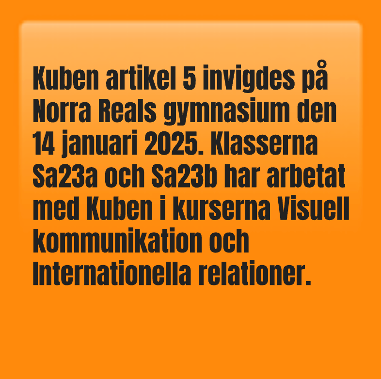Genom Kubmetoden får elever lära sig om mänskliga rättigheter, förhålla sig till den specifika rättigheten och därefter kreativt gestalta de diskussioner, tankar och idéer som väcks. Resultaten av varje skolas Kub kan du ta del av nedanför.